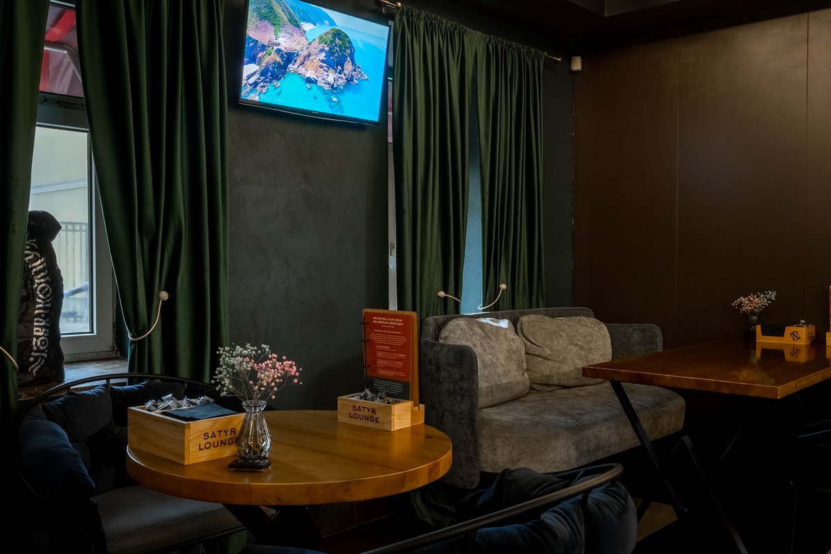 Хотите ненадолго отстраниться от рутинных обязанностей и, наоборот: предпочитаете встретиться с кем-то по делу, только в нерабочей обстановке? В любом случае заглядывайте к нам, в лаунж-бар Satyr Lounge! Пары клубящегося дыма и комфортные залы - это отличный выбор, чтобы посидеть с кальянной трубкой. К вашим услугам табак всевозможных вкусов в меню и эксперименты от наших hookah-мастеров.